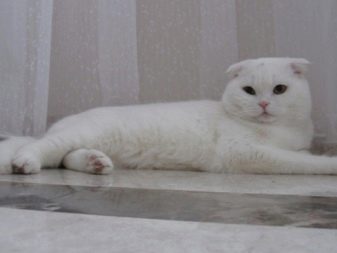 Lipat Skotlandia Putih dengan Mata Biru. Ia adalah kucing putih yang dianggap nenek moyang Scotland. Antara pencinta baka, warna seperti itu dianggap sangat popular dan popular. Kucing putih lop-eared dengan mata biru sangat dihargai, menyebabkan rasa kelembutan dan kesucian. Haiwan semacam itu dilahirkan sangat jarang, dan peminat mereka sering berpeluh untuk mencari impian mereka.