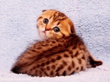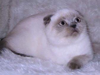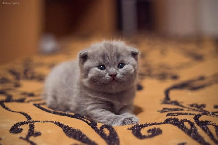 Seringkali telinga kucing ular Scotland mula mengambil bentuk luar biasa mereka hanya beberapa minggu kemudian. Pemilik suka kucing teddy ini kerana sifat dan ketaatan mereka yang baik. The Scots kelihatan sangat comel, dan anak kucing tidak meninggalkan sesiapa yang tidak pedulikan sama sekali - wajah mereka dengan mata bulat yang besar dan hidung rata kelihatan begitu menarik.