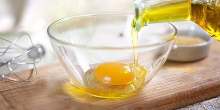 Kuning bercampur dengan minyak, sudu gula dan serbuk mustard ditambah. Komposisi selesai digunakan untuk akar rambut, dan anda pasti perlu memakai topi bulu. Selepas satu jam, disarankan untuk membersihkan kepala dengan air suam dengan teliti. Operasi sedemikian hendaklah diulang sekurang-kurangnya lima kali. Terima kasih kepada prosedur, rambut tidak akan rapuh, ia akan menjadi elastik dan kuat. Ia mesti digunakan secara purata sekali setiap dua minggu.