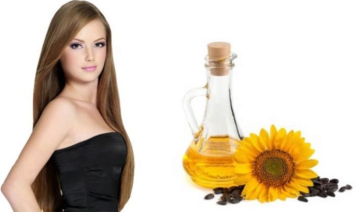 Minyak bunga matahari memperkaya rambut dengan keratin, menyembuhkan mikroskop kulit, menghapuskan pemisahan hujungnya.