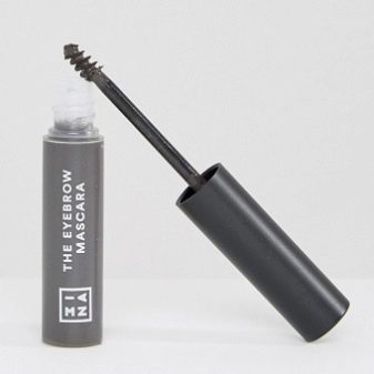 Juga di baris Mina adalah maskara untuk kening. Mereka mempunyai berus yang mudah untuk memberikan kening bentuk yang diingini, mengisi mereka, memperbaiki rambut. Pengilang menghasilkan maskara dalam tiga warna, ia tidak memerlukan kemahiran khas untuk digunakan.