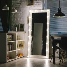 Bagi cermin panjang untuk bilik persalinan atau almari pakaian, mereka biasanya ditambah ke cahaya bawah, jadi sekurang-kurangnya 20 mentol diambil untuk pembuatannya.