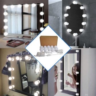 Terdapat beberapa jenis mentol lampu untuk cermin solek. Bentuk yang paling popular yang paling sering digunakan hari ini adalah mentol yang diketuai. Mereka mempunyai beberapa kelebihan penting - mereka tidak panas, berkhidmat untuk jangka masa yang panjang, dan berpatutan. Di samping itu, mereka dijual di mana-mana, jadi menggantikan bola yang sudah usang tidak menjadi masalah.