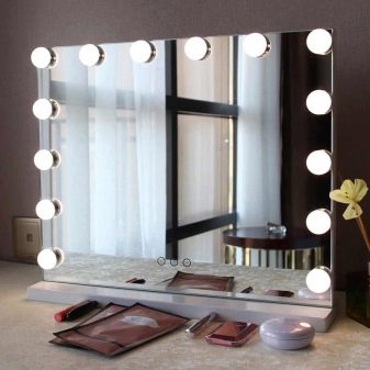Sekiranya anda berminat dengan cerminsebelum itu solek profesional akan dilakukan, maka dimensinya akan menjadi tidak kurang daripada 60 setiap 100 cm. Posisi pada sisi struktur sedemikian 4 lampu setiap 25 cm, tetapi di bahagian atas - 3-4 mentolanda akan mendapat jumlah keseluruhan 11-12 keping, dan hasilnya akan menjadi lampu tanpa bayangan yang seragam.