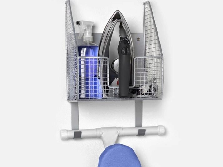 Sekiranya set lengkap papan seterika memerlukan pendirian untuk seterika, maka ini adalah tambahan tambahan semasa operasinya. Pendirian ini amat relevan untuk papan dengan pangkalan kayu, kerana anda tidak boleh meletakkan besi pada mereka. Untuk papan terbina pendirian disediakan, yang dipasang pada dinding kabinet.