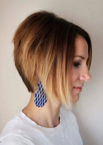 - Ombre. Kaedah yang popular, intipati yang merupakan kombinasi cahaya dan warna gelap. Ia membayangkan peralihan yang lancar dari nada akar ke hujung dan sebaliknya. Warna boleh dekat dengan nada (berbeza dengan 2-3) atau berbeza. Apabila membuat ombre pada rambut pendek, hari ini mereka juga menggunakan warna super bergaya (biru, merah jambu dan hijau). Jenis pewarna ini boleh mempelbagaikan sebarang potongan rambut.