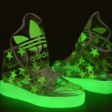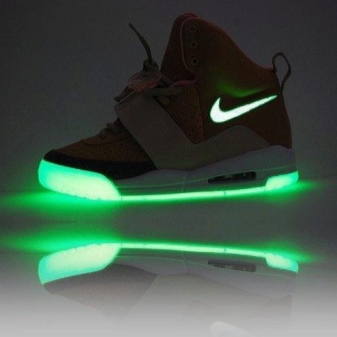 Banyak jenama sukan telah melancarkan kasut dengan satu tangan yang bercahaya. Seperti yang kita katakan sebelumnya, ia adalah syarikat Nike salah satu yang mula-mula mulai memproduksi kasut sedemikian. Pereka sentiasa berusaha untuk mencipta model baru yang sentiasa berjaya.. Adidas dan noxton juga terlibat dalam pengeluaran kasut yang luar biasa itu.