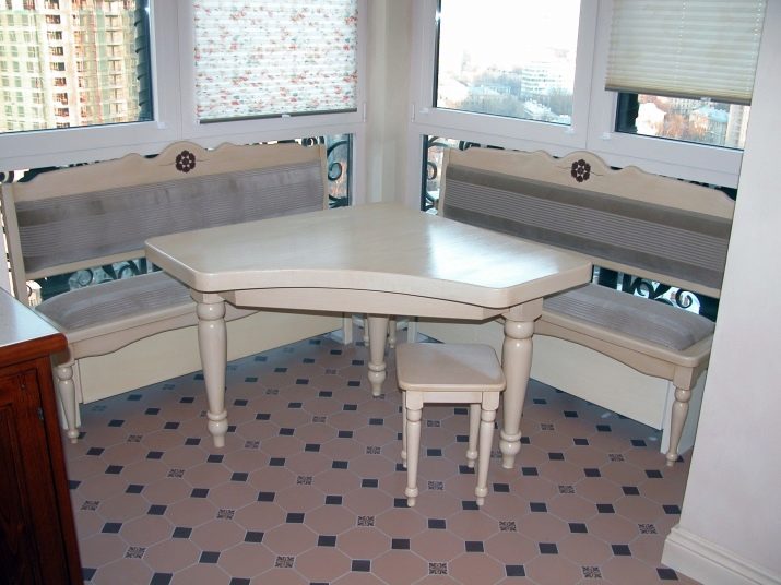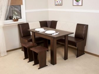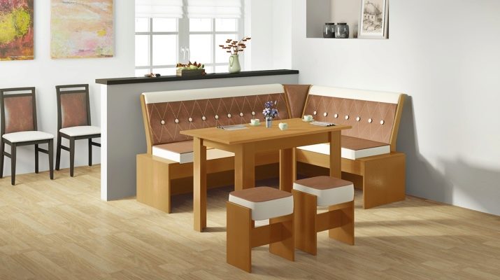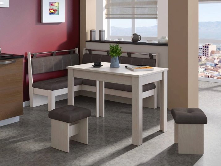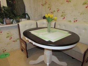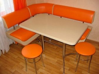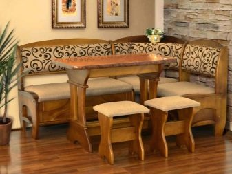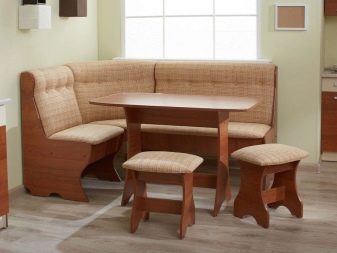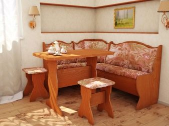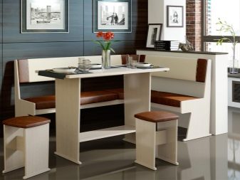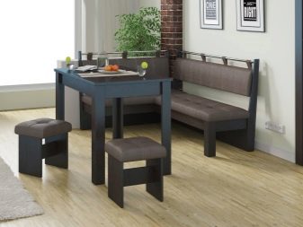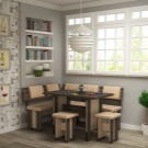 - Lembut digunakan secara meluas. sudut dengan meja. Mereka adalah pelbagai fungsi: mereka boleh berfungsi sebagai kawasan kerja, dan kawasan relaksasi, dan ruang makan. Pelbagai idea reka bentuk menjadikan pilihan ini sangat menarik bagi pengguna.