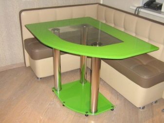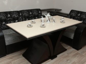 Meja sudut adalah penyelesaian praktikal yang akan membuat pilihan anda sangat menguntungkan dari segi keselesaan dan menjimatkan ruang di dapur. Selain itu, kini para pakar menguasai segala kehendak pelanggan, dan pemasangan model tidak mengambil banyak masa. Dan ingat bahawa produk adalah besar dan padat. Untuk ruang kecil, lebih baik memilih pilihan terakhir.