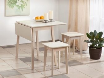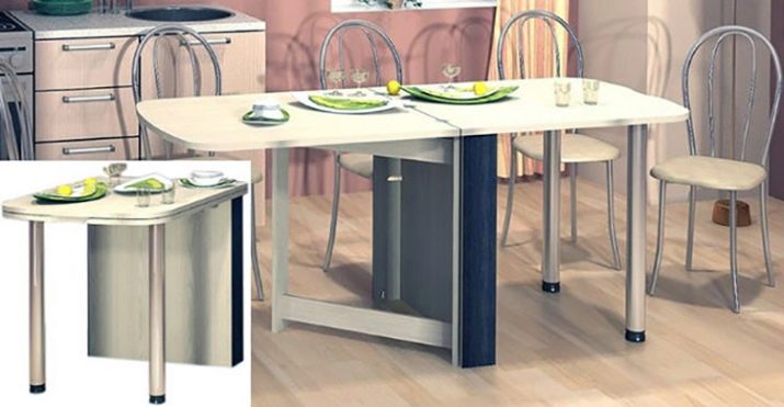 - Nikmat dengan baik ke pedalaman dapur kecil jadual boleh tukar atau boleh dipanjangkan. Satu keluarga tiga dengan mudah di meja yang dilipat. Dan jika tetamu datang ke rumah atau keluarga anda berbeza dengan jumlah ahli, maka jadual boleh dibentangkan.