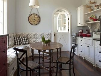 Pereka juga mencuba dan menghasilkan pelbagai pilihan yang menjimatkan ruang di dapur. Oleh itu, kehadiran momen sudut dalam bilik boleh menjadi tempat di mana meja yang selesa terletak.