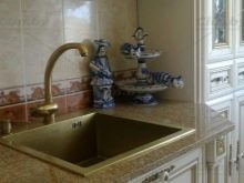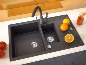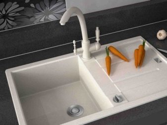 Tenggelam yang diperbuat daripada batu tiruan atau seramik tahan kerosakan mekanikal, kelihatan kukuh dan kaya, menghias dapur mana-mana. Tetapi kelemahan produk sedemikian adalah, mereka sukar dibersihkan, dan kos mereka banyak.