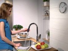 - Mudah untuk beroperasi. Yang paling berjaya adalah paip yang boleh dibuka dengan cepat dan menetapkan suhu yang diingini air outlet. Hanya model yang hebat boleh dianggap sebagai paip ketik sentuh, kerana tahap pemanasan air sentiasa boleh ditetapkan terlebih dahulu, jadi tidak perlu menyesuaikannya dari semasa ke semasa. Ia hanya perlu untuk membawa tangan ke peranti itu kerana air itu sendiri akan segera mengalir dari paip.