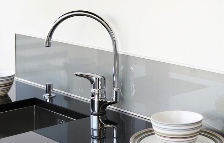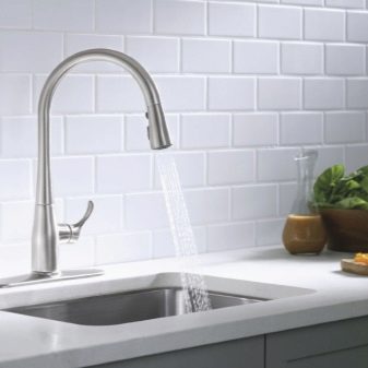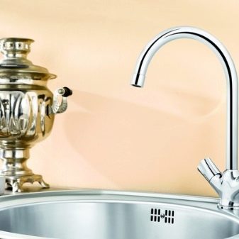 Pastikan untuk mengambil kira bahawa muncung yang terletak tinggi hanya sesuai untuk sinki itu, yang akan mempunyai mangkuk yang paling mendalam, jika tidak, anda tidak boleh mengelakkan penyemburan cecair dari paip di seluruh bilik.
