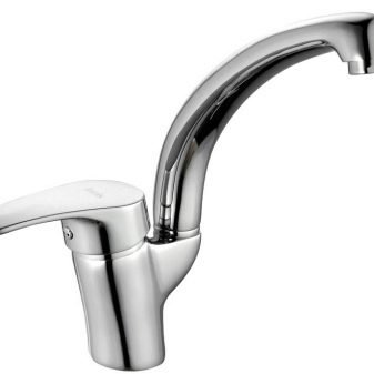 Faucets dengan spout, yang mempunyai ketinggian 12-15 cm atau 15-25 cm, akan sepenuhnya sesuai dengan pemiliknyajika mereka digunakan untuk menggunakan sinki hanya untuk tujuan yang dimaksudkan - untuk mencuci dan membersihkan pinggan, untuk meletakkan air dalam hidangan untuk memasak makan malam.