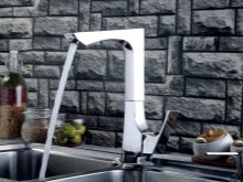 Bagi varieti, kita boleh membezakannya, mengikut ciri reka bentuk. Syarikat ini menawarkan produk terbina dalam dan monolitik, paip dengan spout pull-out dan jenis swivel. Tulang-talang diri mereka rata, runtuh, tinggi dan rendah.