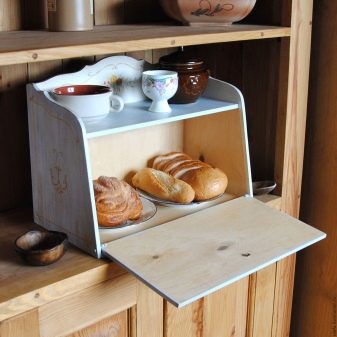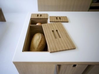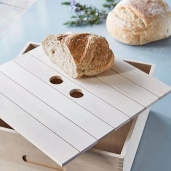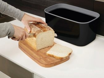 Peranti dengan papan pemotong untuk mengiris mudah digunakan dan sering dipilih oleh suri rumah. Papan boleh disembunyikan di bawah badan dan dilengkapi dengan mekanisme yang boleh ditarik balik. Juga, fungsi papan pemotong boleh dilakukan dengan penutup, pemegang yang mempunyai bentuk yang tersembunyi. Apabila memilih kotak roti itu adalah penting untuk memikirkan tempat untuk dipasang. Ia harus mudah bukan sahaja untuk menyimpan roti, tetapi juga untuk mengirisnya.