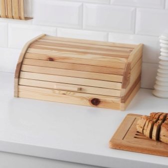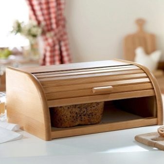 Dari bahan-bahan ini, bak roti yang indah dicipta yang mempunyai ciri prestasi yang baik. Buah birch melepasi udara dengan baik, yang membawa kepada roti basi yang cepat. Kerana peranti sedemikian lebih baik digunakan untuk melayani produk di atas meja. Bamboo menyediakan ketat yang mencukupi, kerana produk roti tetap lembut dan segar untuk masa yang lama.