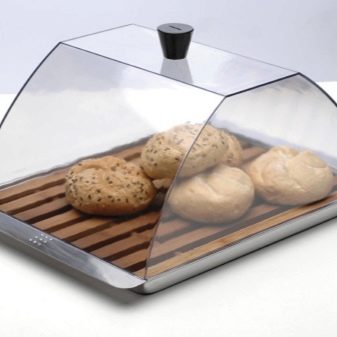- Kotak roti dengan tudung membolehkan anda menyimpan roti untuk masa yang lama. Model tanpa tudung adalah sesuai untuk menghidangkan roti, tetapi bukan untuk penyimpanan.