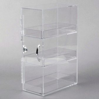 Kotak roti kelihatan menarik, moden dan sangat bergaya. Di mana-mana dapur ada tempat untuknya. Kaca adalah bahan mesra alam yang tidak menyerap bau sama sekali dan mudah dibersihkan. Ketelusan bahan membolehkan anda melihat jumlah roti tanpa membuka tudung. Kelemahan utama adalah kerapuhan, yang disebabkan oleh produk tersebut berumur pendek.