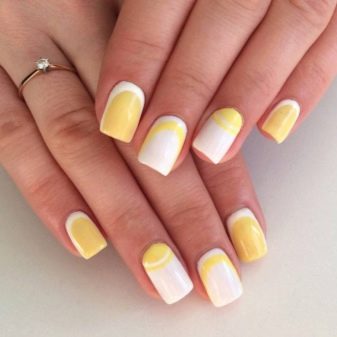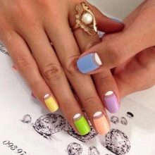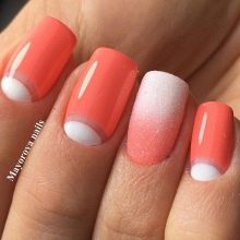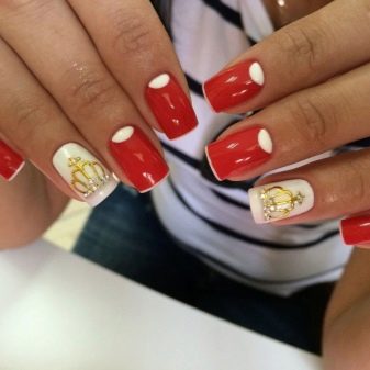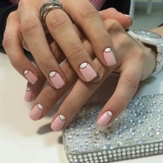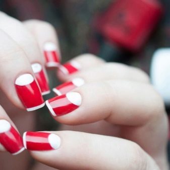 Tetapi lubang-lubang putih dalam kombinasi dengan aksen yang terang akan menjadi pilihan yang baik untuk manicure di jalan keluar. Setakat ini, yang paling relevan adalah gabungan mereka dengan warna berikut: