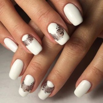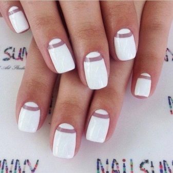 Manicure bulan putih adalah kategori luas yang merangkumi banyak pilihan reka bentuk.Varnish putih boleh ditambah dengan varnis warna lain, serta dihiasi dengan pelbagai spangles, menggosok dan kristal untuk mencapai penampilan kuku yang paling menarik dan menarik.