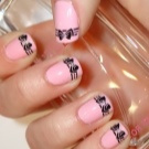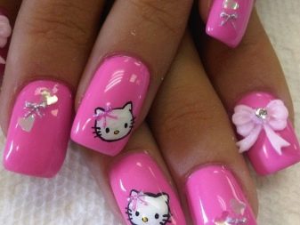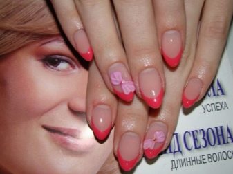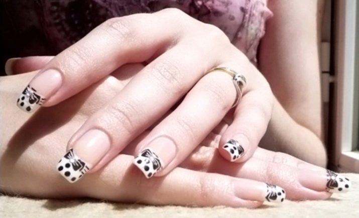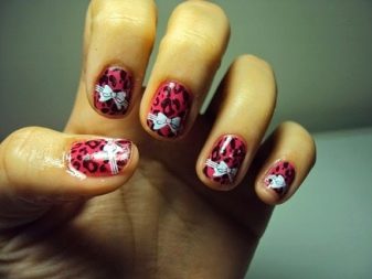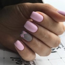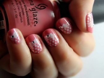 Pilihan penciptaan reka bentuk. Untuk membuat karya sebenar pada kuku anda, anda perlu menggunakan warna halus dalam reka bentuk dengan penambahan putih dan merah jambu. Ia boleh menjadi manicure Perancis atau warna pepejal, tetapi dengan penambahan gambar tunduk.