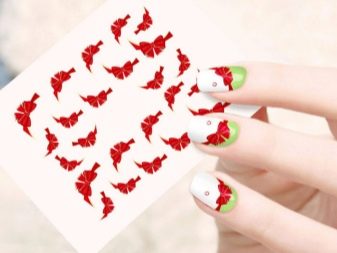 Sarjana biasa biasanya menggunakan pelekat. Ini mungkin perwujudan yang lebih sederhana seperti teknik itu. Hasil yang berkualiti tinggi yang diperolehi tidak berbeza, tetapi di suatu tempat ia juga mengikuti teknik-teknik yang lebih rumit. Setem semasa membuat busur juga dalam permintaan. Ia membantu dengan cepat dan tepat meletakkan lukisan di bahagian kuku di mana ia perlu dan dibenarkan oleh reka bentuk.
