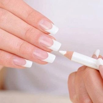 Terdapat pilihan yang lebih rumit, contohnya, dengan manicure Perancis. Ini dilakukan seperti berikut: