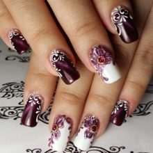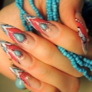 - Art Nail Art. Kaedah ini adalah yang paling sukar dilaksanakan. Manicurist cat hiasan oriental pada kuku menggunakan cat akrilik dan varnis berwarna. Kerja semacam itu seolah-olah seperti karya seni yang penuh, jadi tidak hairanlah ia memerlukan banyak masa, kesabaran dan ketabahan untuk menciptanya.