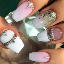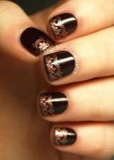 - Hiasan dengan rhinestones dan manik. Manikur Timur adalah wujud dalam jumlah dan kemewahan, jadi ia boleh diubah dengan ketara melalui penggunaan batu berkilauan warna emas.