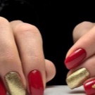 Secara umum, manicure menggabungkan warna emas dan merah memberikan banyak peluang untuk eksperimen. Kedua-dua warna mempunyai warna yang berbeza, dari cahaya dan halus hingga tepu dan gelap.