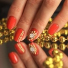 Ia harus ditambah bahawa manicure, yang dibuat dalam warna emas dan merah, adalah salah satu yang paling popular untuk Tahun Baru.