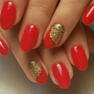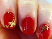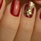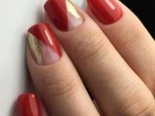 Manicure merah dengan emas dianggap sangat bersemangat dan sensual, jadi ia sesuai untuk wanita cerah yang tidak takut menjadi perhatian.