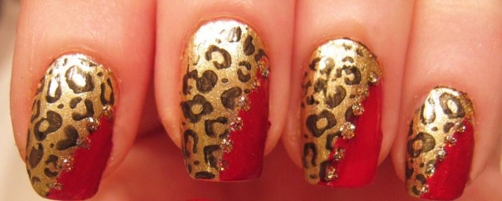 Penyelesaian asalnya adalah pencairan merah dan emas dengan warna hitam, yang dapat sedikit lembap kecerahan dan kecemerlangan. Sebagai pilihan, kebanyakan kuku ditutup dengan merah, dan dua baki di setiap tangan dihiasi "di bawah harimau" dengan bantuan bintik hitam dan emas.