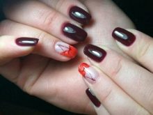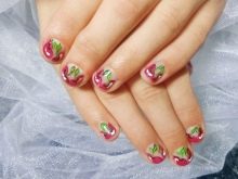Manikur ceri dengan gel menggilap juga dilakukan menggunakan berus untuk menggambar corak., tetapi ia tetap bukan dengan pengeringan mudah, tetapi oleh lampu ultraviolet, yang mana ia menjadi tahan lasak dan bertahan lama. Dan anda juga boleh melakukan manicure volumetrik dengan drop gel yang tebal. Daripada minus manicure seperti itu, seseorang dapat mencatat kos yang baik dan fakta bahawa kuku mesti dipasangkan sebelum menggunakan gel menggilap, mengeluarkan lapisan atas, yang tidak menjejaskan kesihatan kuku.
