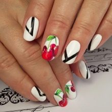 Idea-idea ini adalah yang paling mudah. Dengan imaginasi yang kaya, anda boleh membuat sejumlah besar pilihan untuk manikur dengan ceri untuk sebarang majlis. Perkara utama adalah jangan takut untuk bereksperimen dan memberi rehat percuma kepada imaginasi anda.