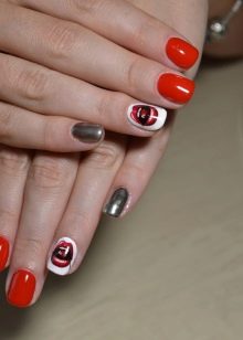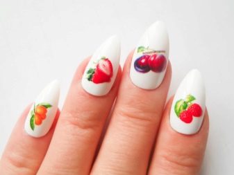 - ceri yang menghiasi kek atau cupcake kini sangat bergaya untuk menggunakan tema makanan yang indah di alamat e-mel, jadi pola seperti pada kuku akan kelihatan moden dan lazat; perkara utama adalah tidak melampaui dengan bilangan kek, lebih baik menggambarkan satu di jari-jari cincin kedua-dua tangan.