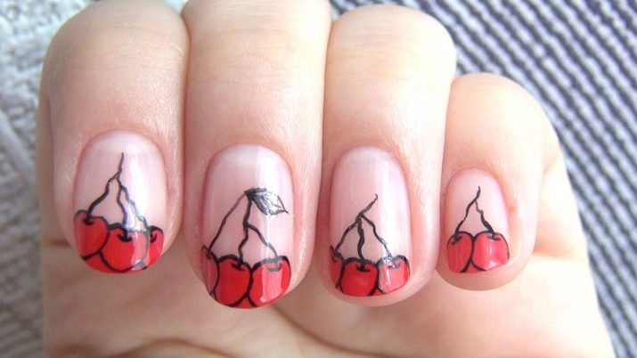 Teknologi moden membolehkan anda memilih pelbagai kaedah dan bahan yang membolehkan anda menggunakan corak khusus untuk kuku. Untuk imej ceri menggunakan beberapa pilihan.