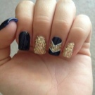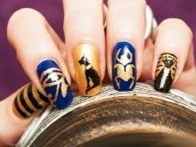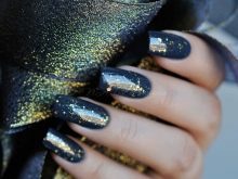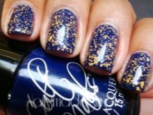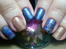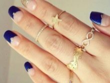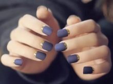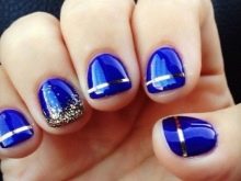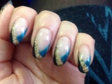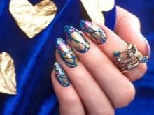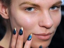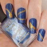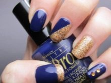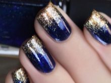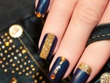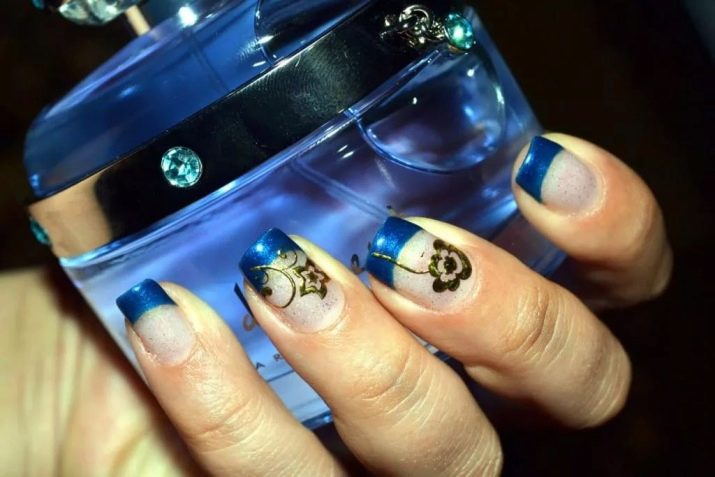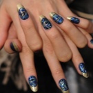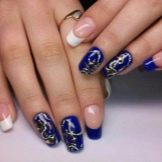 Bagaimana cara membuat manicure biru dengan emas, lihat lebih lanjut.