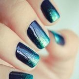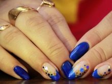 Jika anda mencampurkan dua warna ini, anda boleh mendapatkan manicure mewah yang pasti akan menawan orang lain. Kuku tersebut akan sesuai di sekolah dan di tempat kerja (jika tidak ada kod pakaian yang ketat). Pada parti itu anda juga akan menarik perhatian orang ke tangan anda, kerana manicure biru adalah hit tahun ini.