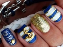 Manicure biru emas boleh berbeza. Di dunia moden, profesional salon kecantikan boleh menyedari apa-apa, idea yang paling berani. Selalunya, tuan-tuan perkhidmatan kuku dibilkan untuk reka bentuk satu kuku, kerana jika anda mahu, anda boleh memilih hanya jari individu dengan dekorasi yang kaya. Pertimbangkan pilihan reka bentuk untuk kuku dalam warna biru dan emas.