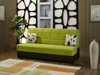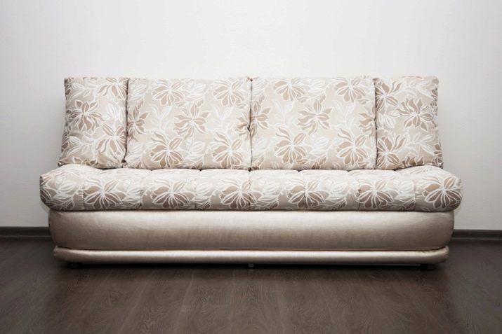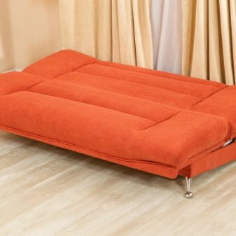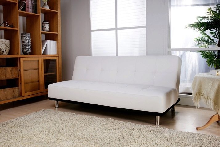 Sofa lurus tanpa lengan tangan mempunyai nama alternatif untuk sandal. Ia agak pendek, tetapi selepas transformasi membentuk tempat yang besar. Reka bentuk perabot itu sentiasa ringkas. Ia mudah untuk dimasukkan ke dalam sebuah bilik kecil.