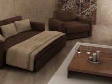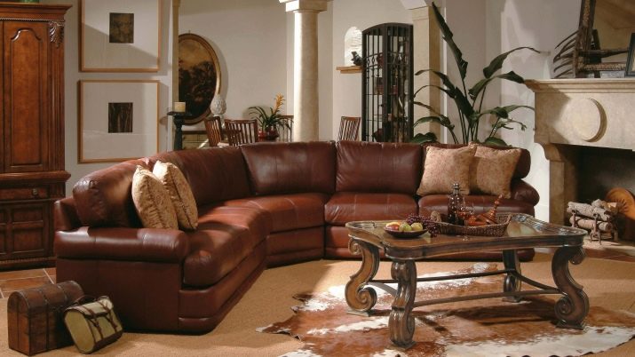- Ruang tamu. Bilik ini sepatutnya selesa dan bergaya, jadi pilihan yang tepat untuk susunannya adalah pengambilalihan model sofa moden jenis sudut. Pada siang hari, perabot adalah sempurna untuk perhimpunan keluarga dan tetamu pertemuan, dan pada waktu malam ia akan menjadi tempat tidur tambahan yang selesa. Adalah dinasihatkan untuk memilih model yang diperbuat daripada kayu semula jadi dengan upholsteri coklat gelap - ini akan menjadikan pedalaman yang mulia dan mahal. Berhampiran sofa seperti itu, meja kopi yang diperbuat daripada kayu padu dengan bahagian atas kaca boleh diletakkan dengan jayanya.