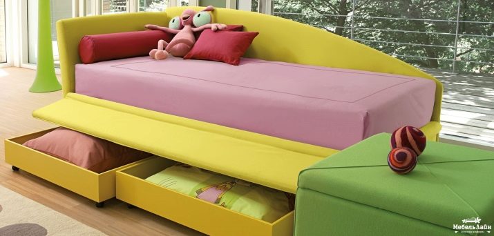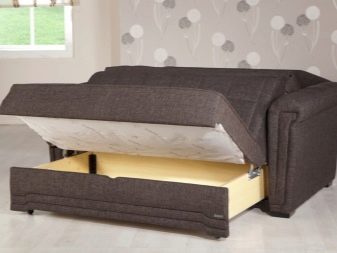 Ramai orang semasa susunan pangsapuri kecil perlu berurusan dengan masalah kekurangan meter persegi. Dalam kes ini, untuk mengatur tempat tidur yang selesa, dengan menggunakan ruang yang minimum, anda perlu membeli sofa padu dengan reka bentuk roll-out. Model sedemikian juga dilengkapi dengan laci untuk linen, yang juga membolehkan anda menyelesaikan masalah penyimpanan peralatan tempat tidur.