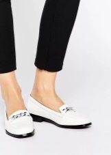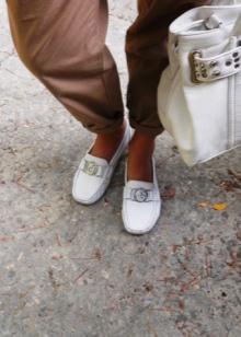 Ia akan menjadi sangat sukar untuk mencapai gabungan yang berjaya walaupun moccasins putih dengan seluar klasik. Walau bagaimanapun, moccasins rata adalah pelengkap hebat kepada seluar bersulam ringan musim panas dengan kaki lurus. Stylists paling mengesyorkan memilih lebih berhati-hati: dalam warna, ia harus lebih ringan daripada warna dasar bahagian bawah.