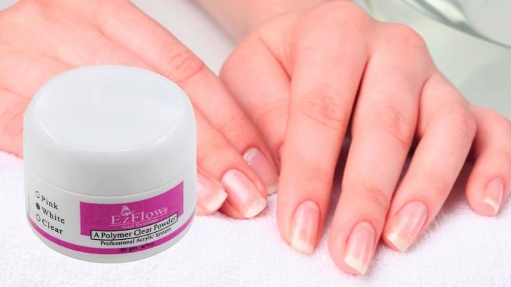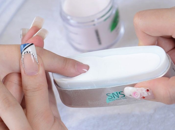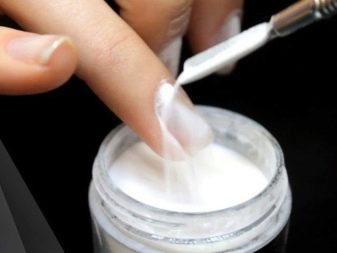 Apabila serbuk berinteraksi dengan cecair (monomer), pengerasan cepat berlaku. Ini menunjukkan keperluan bagi kedua-dua kerja yang tepat dan cepat. Jika tidak, mungkin perlu mengubah keputusan berkualiti rendah. Ciri khas bahan ini adalah keupayaan untuk mengisi mikrokrak walaupun, kerana ia adalah mungkin untuk memulihkan permukaan kuku yang rata dan licin.