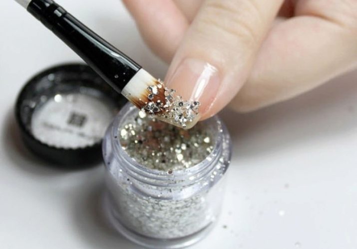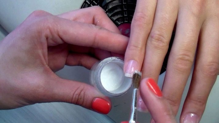 Jika perlu, anda boleh menggunakan serbuk akrilik sekali lagi. Secara umum, teknik asas tidak boleh dipanggil selesai, kerana hampir selalu jiwa wanita memerlukan rayuan estetik maksimum paku, yang dapat dicapai dengan mengotorkan mereka.