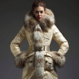 - Downy. Pilihan yang agak demokratik, tidak mahu mengakui bahan lain. Jaket turun warna-warna cantik tepu dengan kerah bulu yang terbuat dari rubah perak atau biru, yang masuk ke pinggir rak ke bahagian bawah, menikmati kejayaan yang sama di kalangan wanita muda.