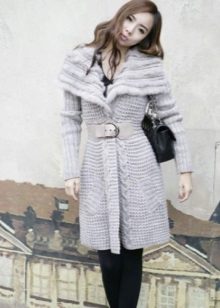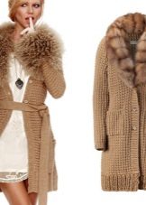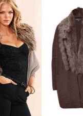 - Dirajut. Pilihan asal untuk offseason itu. Untuk kolar kecil dan lengan trim atau poket, bulu palsu sempurna, warna yang akan menekankan kedua-dua warna dan tekstur kot itu sendiri.
